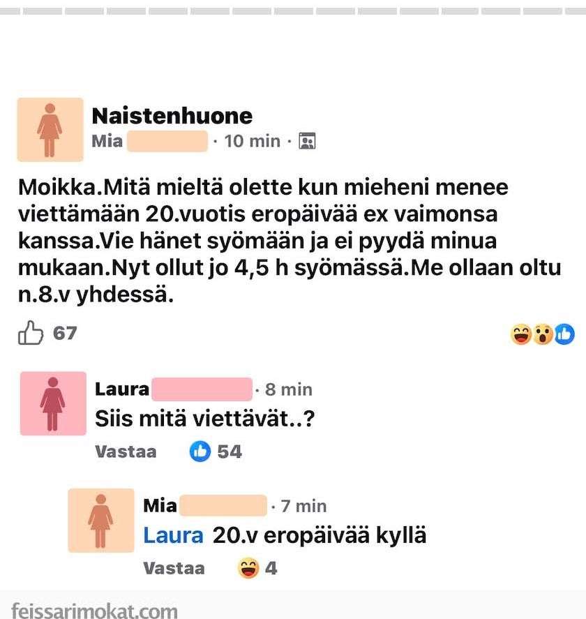 - Feissarimokat: Mies vietti ex-vaimonsa kanssa 20-vuotiseropäivää. Onko oikein?