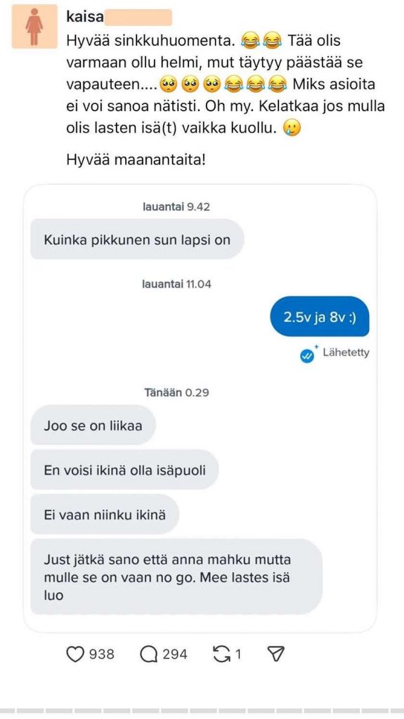 Feissarimokat: Sinkkuäiti-Kaisa sai sinkkumieheltä karmean vastauksen